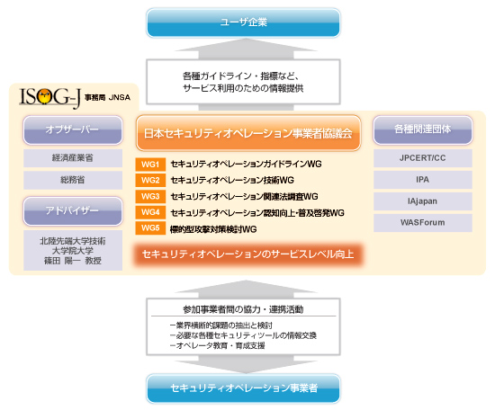 日本セキュリティオペレーション事業者協議会(Information Security Operation providers Group Japan 略称:ISOG-J)は、セキュリティオペレーション技術向上、オペレータ人材育成、および関係する組織・団体間の連携を推進することによって、セキュリティオペレーションサービスの普及とサービスレベルの向上を促し、安全で安心して利用できるIT環境実現に寄与することを目的として設立されました。
